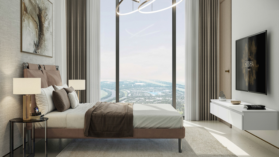 With the fresh and contemporary legacy of Sobha Group, Sobha Solis at Dubai Motor City sets a new benchmark in branded living. Offering a thoughtfully curated collection of 1, 1.5, 2, and 3-bedroom apartments, this grand development embodies architectural perfection and raises global living standards. Located in one of the city’s fastest-growing, eco-friendly metropolitan hubs, Sobha Solis is designed with mindfully crafted details that harmonize with the vibrancy of the community and the beauty of the local landscape. From sweeping vistas of the race track, Butterfly Garden, lush greenery, and the iconic Burj Khalifa skyline, every element is crafted to inspire a lifestyle of elegance and comfort.